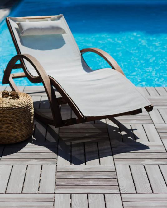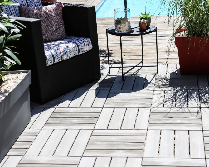 Jede Fläche im Innen- und Außenbereich kann, dank der geringen Aufbauhöhe von nur ca. 2.6 cm der Klickfliesen, einfach überdeckt werden. Egal ob Gartenterrasse, Balkon, Freisitzfläche, Wintergärten, Wege oder Flächen um Pools – für jedes Projekt die passende Bodenplatte.