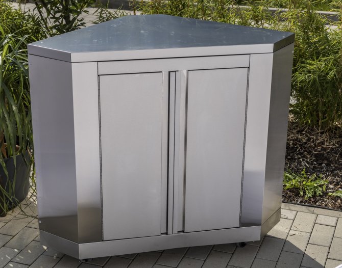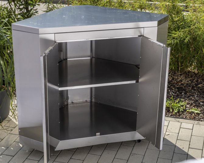 Holen Sie sich mit diesem Eckschrank aus Edelstahl das Beste für Ihre Outdoor-Küche und verwandeln Sie jeden Kochmoment in ein Erlebnis.