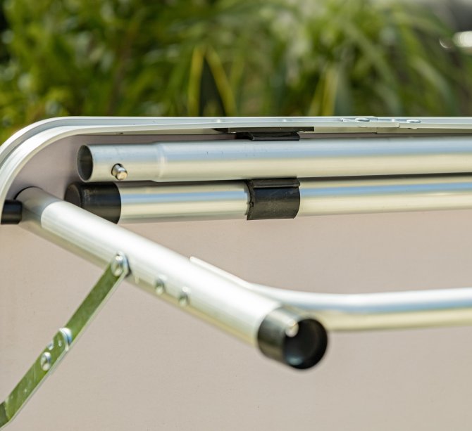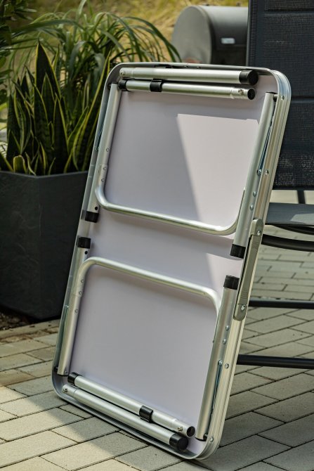 Hochwertiges Material: Unser faltbarer Campingtisch überzeugt durch seine exzellente Verarbeitung und Materialien höchster Qualität. Die Tischplatte besteht aus einer robusten MDF-Platte der Klasse E1 (4,5 mm), eingefasst in einen stabilen Aluminiumrahmen. Der Tragrahmen aus Aluminiumrundrohren sorgt für zusätzliche Stabilität, ist rostfrei und garantiert eine lange Lebensdauer.