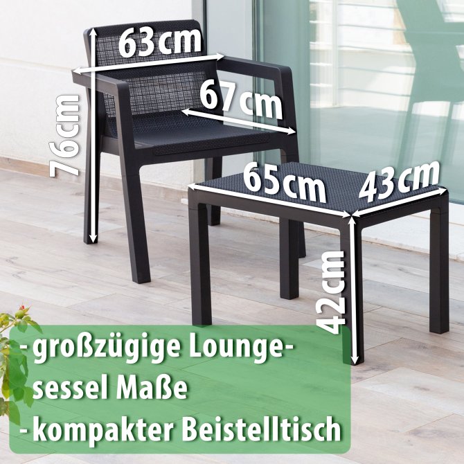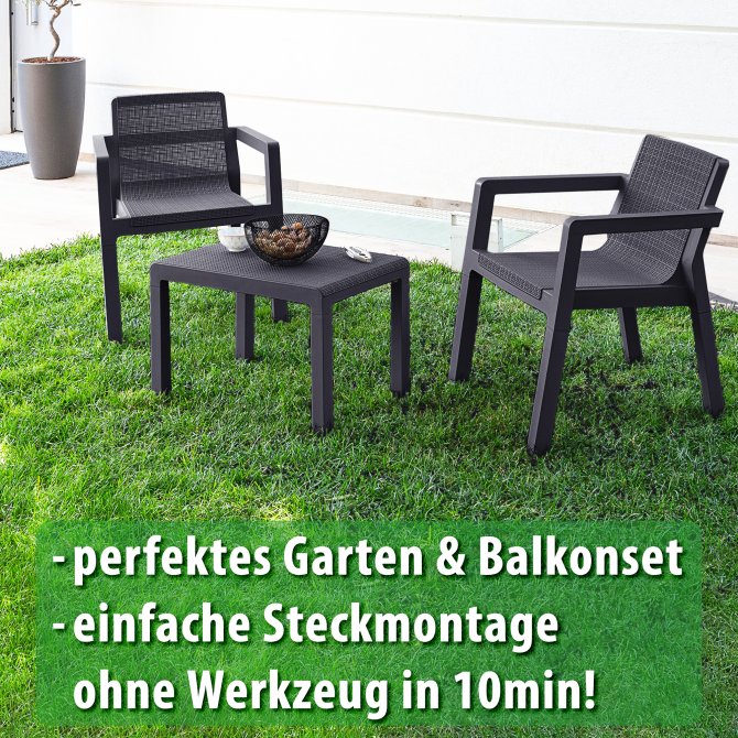 Riviera Balkon Set 2 Sessel mit Tisch anthrazit