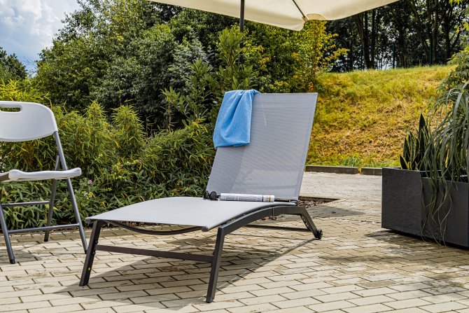 Mit dem zeitlosen Design, klaren Linien und Funktionalität lädt diese Sonnenliege Chaise aus Kunstfasern regelrecht zum gemütlichen Sonnenbaden im Garten oder auf der Terrasse ein. Zudem ist sie aus sehr flexiblem und reißfestem Material. Dieses ist auch noch äußerst pflegeleicht! Um es zu säubern können Sie Neutralreiniger, Bürste oder den Gartenschlauch verwenden.