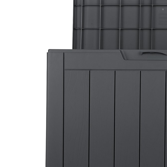 Zum anderen ist das Material mit der täuschend echten Holzoptik sehr leicht, sodass diese Kissenbox mit einem Eigengewicht von ca. 3.8 kg einfach umzustellen ist. Außerdem kann sie an den integrierten Griffmulden gut transportiert werden. Der Kunststoff ist zudem um einiges pflegeleichter, als Holz. Sollte die Kissenbox mal schmutzig werden, kann man diese schnell und einfach mit einem Neutralreiniger reinigen und erspart sich somit viel Mühe und Zeit. Praktisch - Der bis zu max. 75 kg belastbare Deckel, welche für jede Gartenparty einen zusätzlichen Sitzplatz bereitstellt.