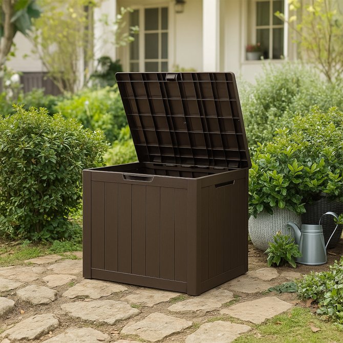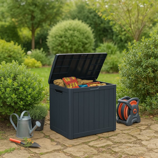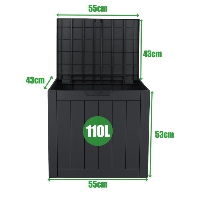 Diese Mehrzweckbox verstaut schnell und einfach Ihre Gartenuntensilien. Aus den maßen ca. 55 x 43 x 53 (H) cm ergibt sich ein geräumiges Fassungsvermögen von ca. 110 Litern. So können Sie von kleinen Haushaltsmitteln, Utensilien bis hin zu Kinderspielzeug alles in dieser Box verschwinden lassen.