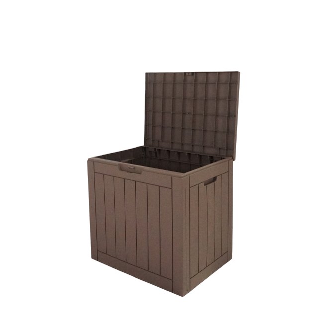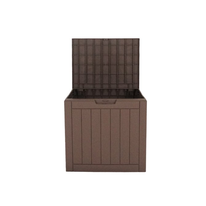 City Cube 110L, Holz Optik, Kunststoff, braun, mit Abschließmöglichkeit (Vorhängeschloss nicht enthalten), Maße ca. 55 x 43 x 53 (H) cm, witterungsbeständig, bis max. 75 kg belastbarer Deckel