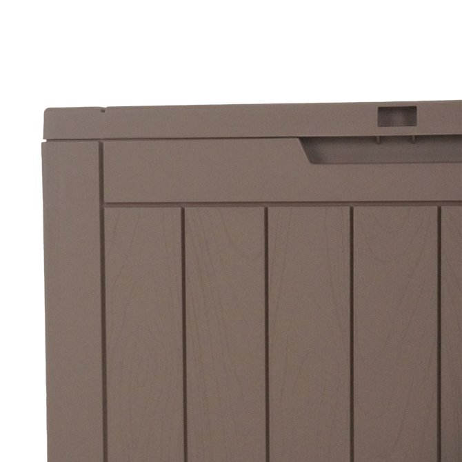 Zum anderen ist das Material mit der täuschend echten Holzoptik sehr leicht, sodass diese Kissenbox mit einem Eigengewicht von ca. 3.8 kg einfach umzustellen ist. Außerdem kann sie an den integrierten Griffmulden gut transportiert werden. Der Kunststoff ist zudem um einiges pflegeleichter, als Holz. Sollte die Kissenbox mal schmutzig werden, kann man diese schnell und einfach mit einem Neutralreiniger reinigen und erspart sich somit viel Mühe und Zeit. Praktisch - Der bis zu max. 75 kg belastbare Deckel, welche für jede Gartenparty einen zusätzlichen Sitzplatz bereitstellt.