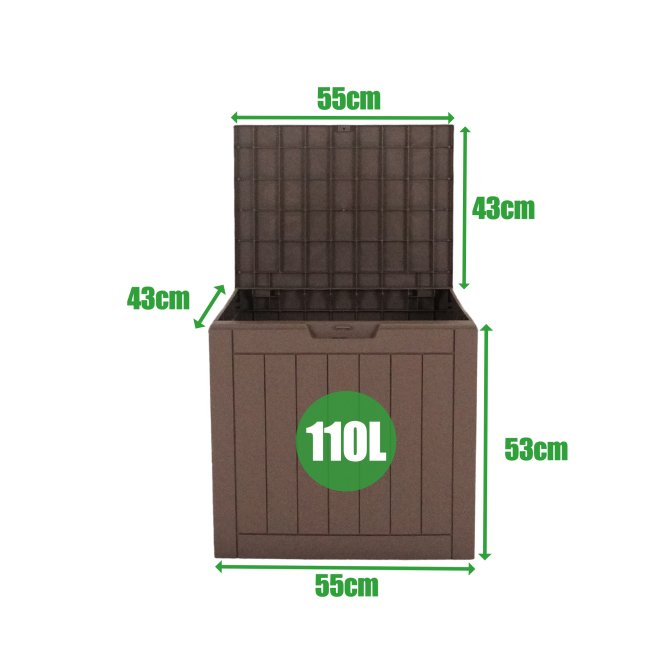 Diese Mehrzweckbox verstaut schnell und einfach Ihre Gartenuntensilien. Aus den maßen ca. 55 x 43 x 53 (H) cm ergibt sich ein geräumiges Fassungsvermögen von ca. 110 Litern. So können Sie von kleinen Haushaltsmitteln, Utensilien bis hin zu Kinderspielzeug alles in dieser Box verschwinden lassen.