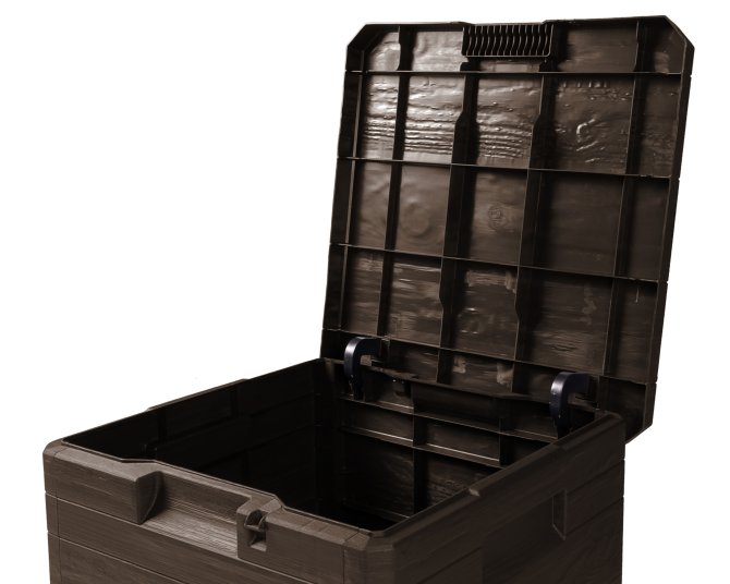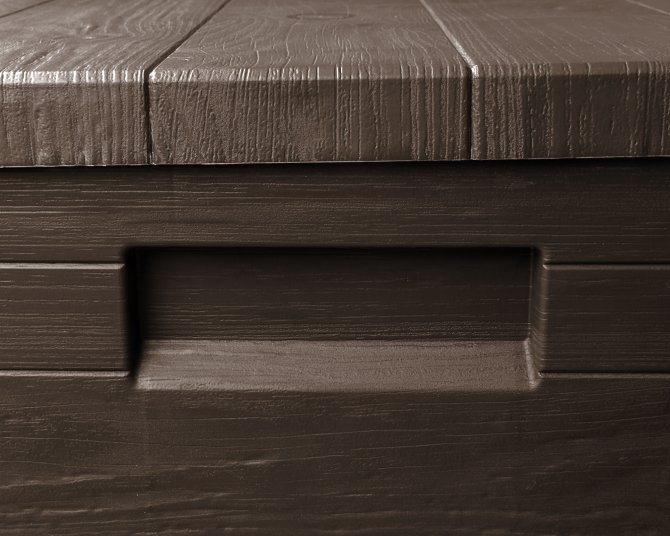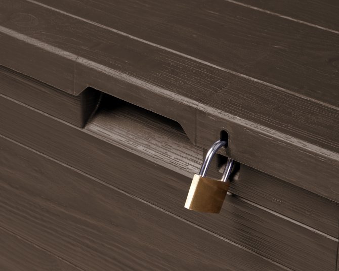 Neben der beeindruckenden Füllkapazität überzeugt die Kissenbox Madera Mini zudem mit ihrem Material. Der hochwertige Kunststoff bringt weitere viele Vorteile mit sich. Zum einen ist er sehr stabil und die moderne Farbe bleibt Ihnen auf lange Zeit erhalten. Sollten Sie Angst um Ihre Wertgegenstände haben, so dient eine vorgefertigte Öse der Anbringung eines Vorhängeschlosses (nicht im Lieferumfang enthalten).