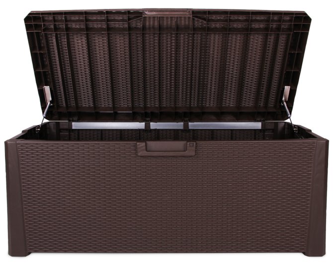 Wenn Sie sich draußen von der Gartenarbeit ausruhen oder einfach das schöne Wetter genießen wollen, ist diese Gartenbox ebenfalls bestens geeignet für Sie. Sie können die Box einfach als Bank nutzen, worauf 2 Erwachsene bequem einen Platz finden. Sie ist ebenfalls ideal als Ergänzung Ihrer Gartenmöbel für Grillpartys mit vielen Gästen geeignet. Aufleger können Sie ganz schnell aus der Kiste hervorzaubern; durch Gasdruckfedern lässt sich der Deckel im Handumdrehen öffnen und schließen.