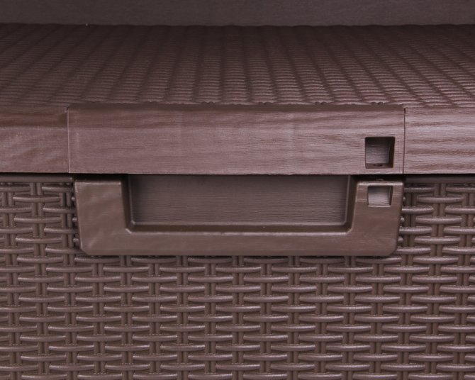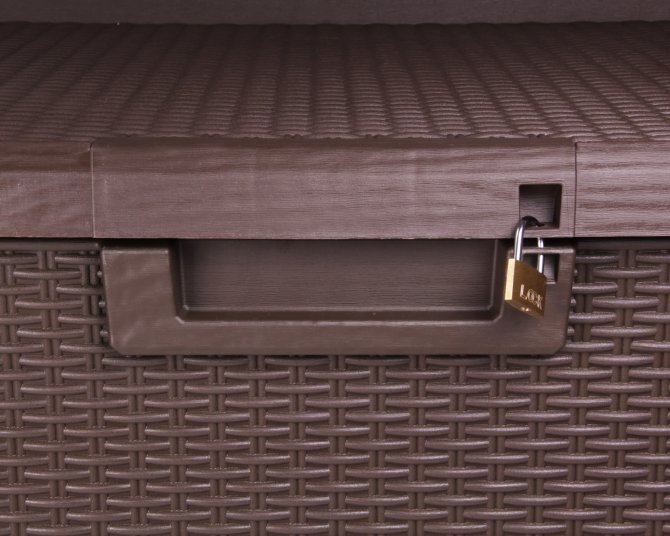 Das Wetter kann dieser tollen Auflagenbox aus Kunststoff nichts anhaben. Die Box ist UV-resistent und geschützt nach IP 43 Standard; das Innere ist also auch vor schräg (bis 60°) fallendem Sprühwasser sicher. Vor unberechtigtem Zugriff können Sie die Box mithilfe eines Vorhängeschlosses (nicht im Zubehör enthalten) sichern. Entsprechende Ösen wurden intelligent integriert.