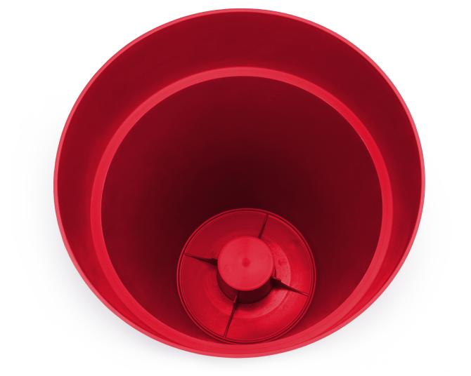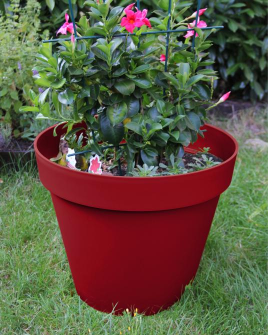Im Boden befinden sich sechs Stellen zum Durchbohren, sodass das Wasser abfließen kann, sollten Sie ihn draußen einsetzen wollen. Wenn Sie den Pflanzkübel als Übertopf nutzen wollen, wird Ihnen der ca. 11 cm hohe Abstandshalter für einen Wasserspeicher nützlich sein. Bei einem Pflanzvolumen von 76 l ist der Kübel ca. 47 cm hoch und hat am oberen Rand einen Durchmesser von ca. 60 cm, unten einen von ca. 36 cm.