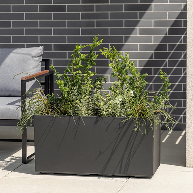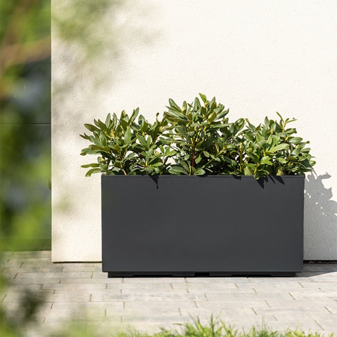 Der Pflanzwürfel Caro 80 ist aus Kunststoff gefertigt, welcher zu 100% recycled wurde. Doch das sieht man der hochwertigen Oberfläche keinesfalls an. Diese ist der Struktur von Beton nachempfunden und wurde mit modernen Elementen ansprechend in Szene gesetzt. Der Pflanzkübel Caro besticht durch seine klaren Linien und fügt sich somit perfekt in moderne Gärten oder Vorgärten ein. Dank des klassischen Designs macht er aber überall eine gute Figur.