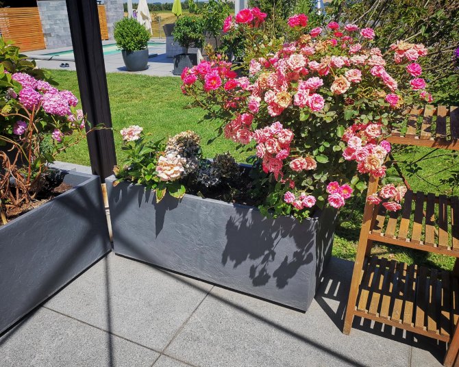 Der Pflanzkübel Vulkan 100 hat ca. 98 Liter Pflanzvolumen und lässt sich besonders schön mit den verschiedensten Blumen bepflanzen, aber auch reduzierte Pflanzenarrangements wirken wundervoll in diesem Blumenkübel. Der Pflanzkübel Vulkan 100 wirkt schön auf der Terrasse oder dem Balkon und auch an einer exponierten Stelle im Garten verbreitet er seinen klassischen Charme. So lässt sich mit wenig Aufwand modernes Design in verschiedenste Arrangements einfügen.