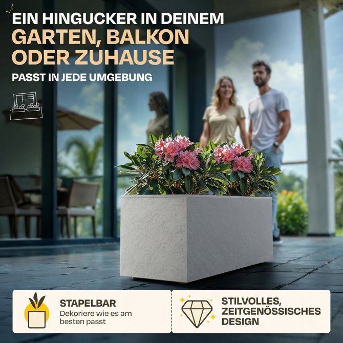 Der Frühling steht vor der Tür – Was gibt es schöneres als seinen Garten mit neuen, farbigen Pflanzen zu dekorieren? Vermutlich nicht viel. Fehlt nur noch der richtige Pflanzkübel, um das moderne Ambiente abzurunden. Mit unserem Vulkan Balkonkasten bieten wir Ihnen einen attraktiven Blumenkübel, um Ihre Balkon oder die heimische Terrasse abzurunden. Die rustikale Gesteinsnachbildung wirkt zudem modern und gleichzeitig zeitlos elegant.