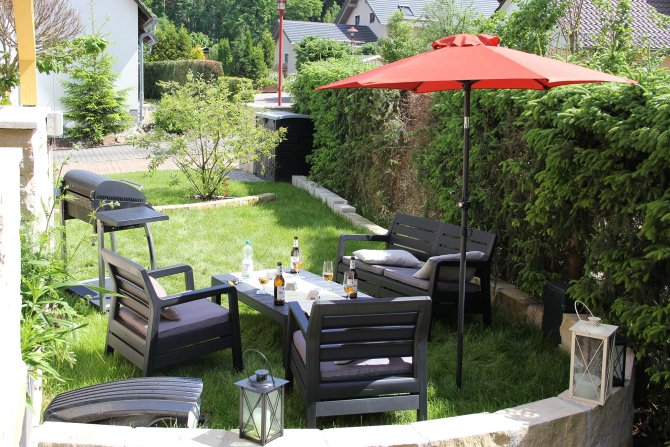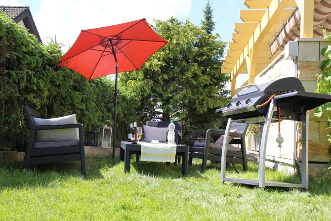Die Sommertage werden immer heißer und oft sehnt man sich nach einem gemütlichen schattigem Plätzchen. Unter dem großen Marktschirm mit einem Durchmesser von 180 cm ist perfekt Platz für eine Sonnenliege, um nach einem langen Tag die Beine hoch zu legen, ein schönes Buch zu lesen und bei einem kühlen Getränk abzuschalten. Das moderne Design bringt den Sommer in Ihren Garten, auf Ihre Terrasse und an jeden anderen beliebigen Ort.