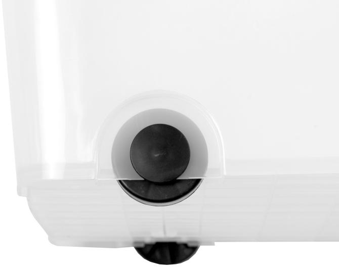 Der hochwertige Kunststoff Polypropylen besitzt viele attraktive Eigenschaften. Er ist zum Beispiel lebensmittelecht, sodass Ihnen viele Möglichkeiten der Lagerung offen stehen. Aufgrund des geringen Gewichts von 2,95 kg können Sie die Box leicht transportieren und umstellen. Sollte der Inhalt die Box zu sehr beschweren, erleichtern Ihnen vier einsteckbare Rollen das Verschieben der Allzweckbox.