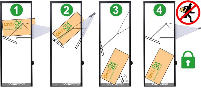 Pakete, Päkchen, Warensendungen und Briefe können vom Postboten einfach und kontaktlos in die Klappe eingeworfen werden und fallen beim Schließen in den Paketsafe. Dank einem Klappensystem sind die Briefe und Päckchen ab sofort von der Klappe aus nicht mehr zugänglich. Wenn Sie nach Hause kommen können Sie dann den Paketsafe mit dem Schlüssel öffnen und Ihre Briefe und Pakete entnehmen, die dort vor Regen, Witterung und Dieben geschützt sofort für Sie bereit liegen.