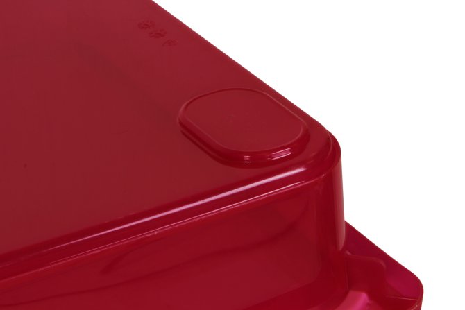 Die Aufbewahrungsbox Kreo Box 7,5 L ist durch den tiefer liegenden Deckel, aus welchem sich eine ebene Fläche ergibt und Füße am Boden der Box, modular kombinierbar.