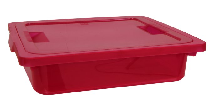 Die Aufbewahrungsbox sticht besonders durch ihre flache und platzsparende Größe hervor. Die Box besteht aus hochwertigen und stabilen Kunststoff PP05 und dient zur Aufbewahrung aller in der Größe passenden Inhalte, die durch den Deckel sicher verstaut werden können. Die Aufbewahrungsbox besitzt die Maße von ca. 39 x 35 x 9 (H) cm und wiegt zudem nur ca. 0,4 kg. Mit einer Gesamtbelastbarkeit von ca. 8 kg, lässt sich diese Box befüllen. Das Volumen beträgt ca. 7,5 Liter und bietet ausreichend Platz zur Aufbewahrung. Im Deckel der Aufbewahrungsbox befinden sich zwei praktische Griffe zum Öffnen der Box. Durch Einschubschienen, welche zu jeder Box separat erhältlich sind, lassen sich die Boxen individuell in einem Schubladensystem ohne großen Aufwand integrieren. Der besonders robuste Rand der Box trägt zugleich zur Stabilität bei und verpasst der Kreo Box eine schöne Optik.