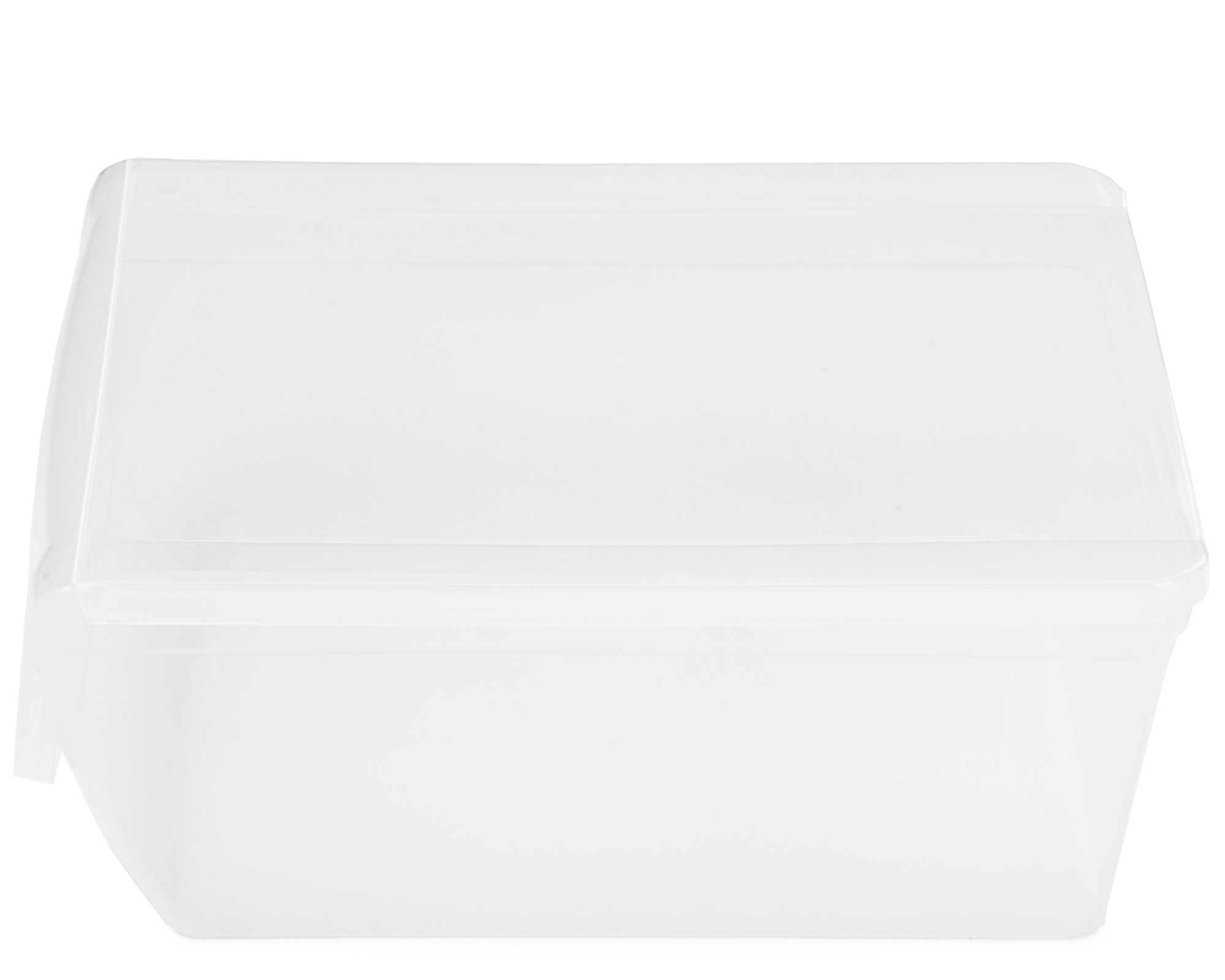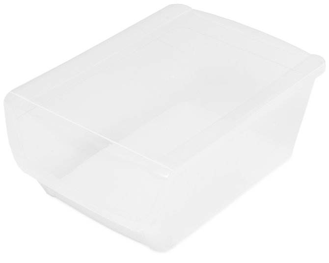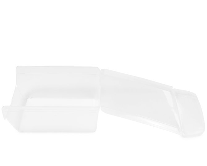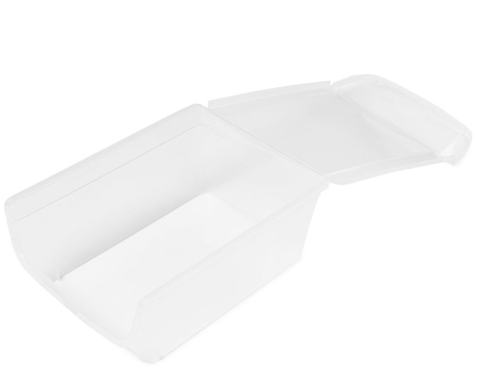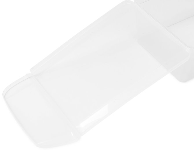 Die Aufbewahrungsbox besteht aus hochwertigen Kunststoff PP05 und ist charakteristisch gekennzeichnet durch die Robustheit und der speziellen Form der transparenten Box. Die Kunststoffbox ergibt sich aus den Maßen von ca. 22 x 32 x 14 (H) cm und ist mit einem Gewicht von nur ca. 0,4 kg ein echtes Leichtgewicht. Das nutzbare Innenmaß beträgt in der Höhe ca. 14 cm und auf der Bodenfläche ca. 18 x 26,5 cm. Mit einem umfangreichen Volumen von ca. 10 Litern lassen sich verschiedenste Gegenstände in dieser Box aufbewahren. Dazu gehören Dekorationsartikel, Spielzeuge, Werkzeuge, Tiernahrung und vieles mehr. Die Besonderheit der One Box M ist ihre Form. Zum Öffnen der Box dient ein zweiteiliger Deckel, so dass es nicht nötig ist, den Deckel vollständig abzunehmen, um in das Innere der Box zu gelangen.