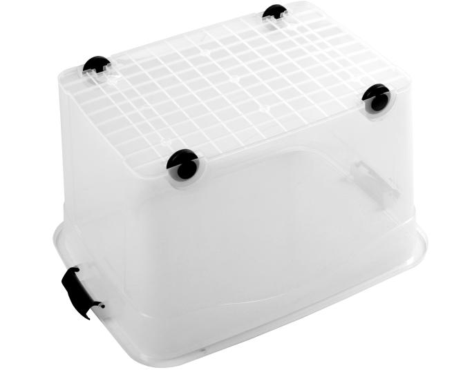 Der hochwertige Kunststoff Polypropylen besitzt viele attraktive Eigenschaften. Er ist zum Beispiel lebensmittelecht, sodass Ihnen viele Möglichkeiten der Lagerung offen stehen. Aufgrund des geringen Gewichts von 2,95 kg können Sie die Box leicht transportieren und umstellen. Sollte der Inhalt die Box zu sehr beschweren, erleichtern Ihnen vier einsteckbare Rollen das Verschieben der Allzweckbox.