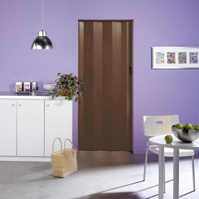 Mit den drei attraktiven Farben: Weiß, hellbraun und dunkelbraun finden unsere Falttüren in jeder Wohnung einen geeigneten Platz. Außerdem trägt die Holz Struktur dieser Schiebetür zu einem wohnlichen und bequemen Charakter bei. Die Reinigung des Kunststoffs ist ebenso sehr leicht. Dank der kompakten Maße ist die Falttür flexibel einsetzbar. Die Durchgangsbreite beträgt ca. 84 cm und die Höhe ca. 215 cm.