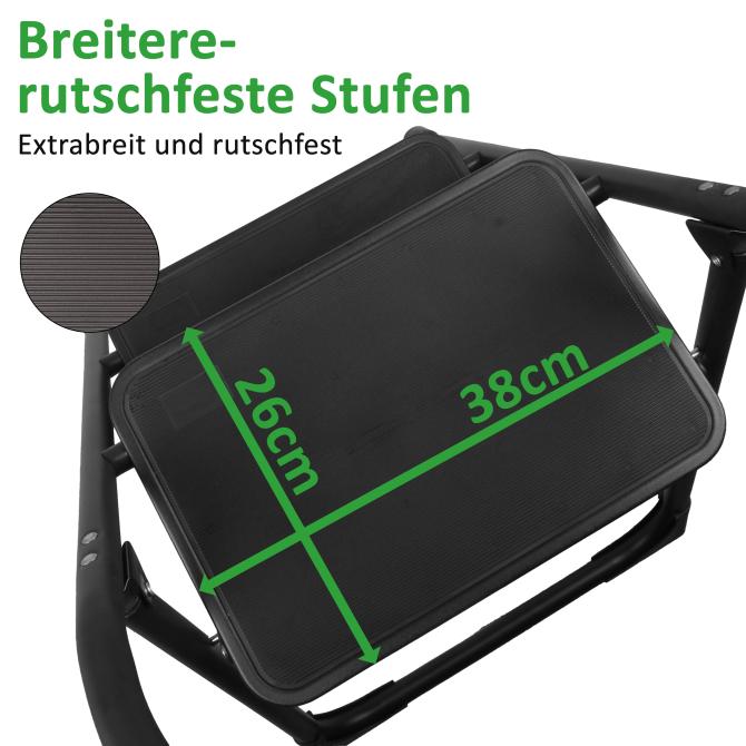 Sichere XXL-Stufen: Die vier extra großen Stufen mit einer Fläche von 38 x 26 cm sind mit einer rutschhemmenden Riffelstruktur ausgestattet. Dadurch haben Sie jederzeit festen Halt und sicheren Stand, auch bei intensiver Nutzung.
