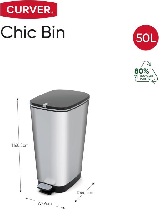Der Abfalleimer Mülleimer Chic kann dank der Gummifüße und des ausgeklügelten Designs beim Betätigen des Pedals nicht verrutschen oder kippeln. Die Optik ist dank moderner In Mold Labeling Technik (ILM) dauerhaft vor äußerlichen Beschädigungen geschützt. Hierbei wird die Designfolie hinterspritzt, wodurch sie eine dauerhafte Bindung mit dem Kunststoff eingeht. Dies trägt maßgeblich zur Qualität und Langlebigkeit bei. Außerdem sorgt dieses Verfahren und die spezielle Beschichtung dafür, dass keine Fingerabdrücke auf der glänzenden Oberläche zu sehen sind, wenn Sie den Eimer anfassen.