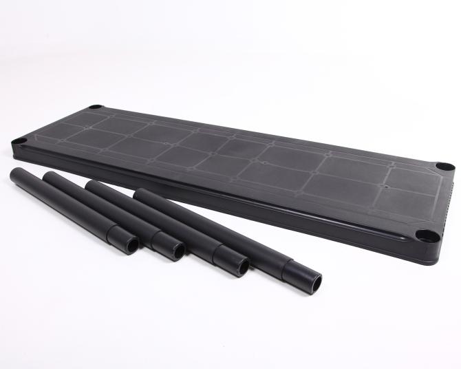 Dieses anthrazitfarbene Schwerlastregal, Lagerregal, Universalregal, Steckregal hat 5 geschlossene Böden aus hochwertigem Kunststoff. Das Regal ist ca.120 (B) x 40 (T) x 180 (H) cm groß. Die Böden werden mittels der Rohre einfach eingesteckt. Für den untersten Boden gibt es entsprechende Füße, welche einen ausreichenden Abstand zum Fußboden herstellt. Damit ist das Regal auch für Feuchträume geeignet.