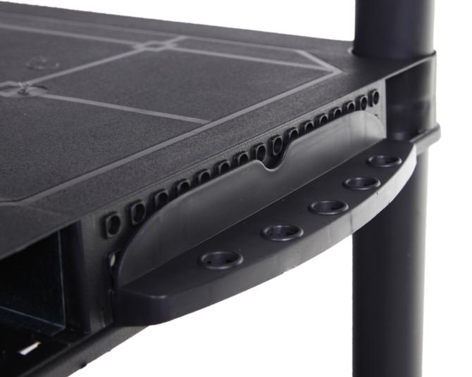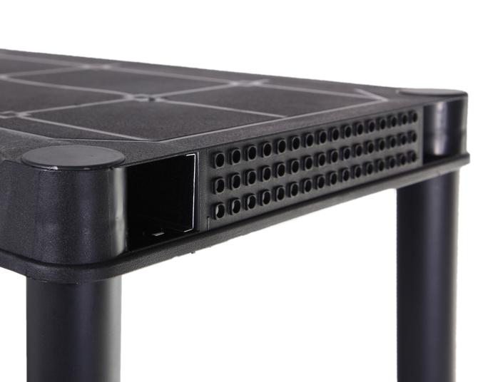 Die Rohrenden des oberen Bodens werden mit den mitgelieferten Abdeckkappen verschlossen. Die Regalböden sind so gestaltet, dass man mehrere Regale mit den mitgelieferten Verbindern untereinander fest verbinden kann. Ebenfalls im Lieferumfang befinden sich zwei Wandhalter, womit man das Regal an der Wand festschrauben kann.