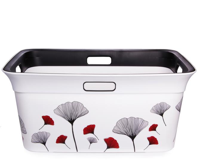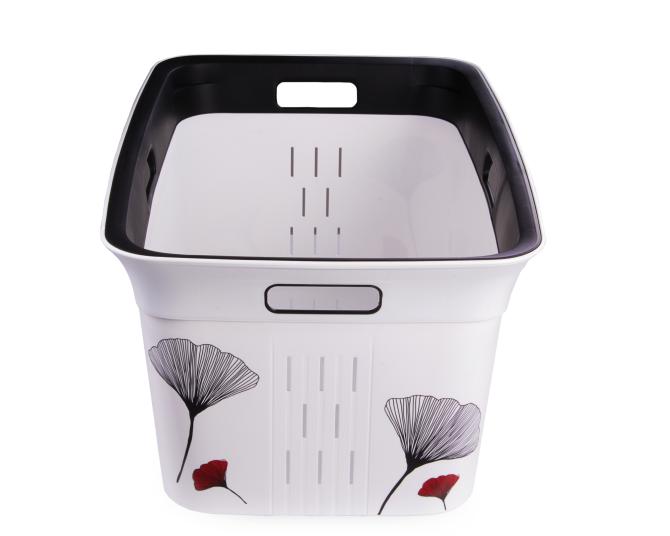 Der Wäschekorb Moda 45 Liter hat einen sicheren Stand. Die Wanne hat am Boden keine Öffnungen, sodass man auch sehr nasse Wäsche darin unterbringen kann. An den Seiten finden sich praktische Belüftungsschlitze, die auch das Lagern feuchter Wäsche ermöglichen. Diese Wäschetruhe ist aus hochwertigem, geruchsneutralem Kunststoff (PP05) gefertigt und weist eine qualitativ hochwertige Verarbeitung auf. Das Dekor wird mit dem In-Mold-Verfahren aufgebracht und ist so dauerhaft gut vor äußerlichen Beschädigungen geschützt. Hierbei wird die Designfolie hinterspritzt, wodurch sie eine dauerhafte Bindung mit dem Kunststoff eingeht. Dieses Fertigungsverfahren trägt maßgeblich zur Qualität und Langlebigkeit bei.
