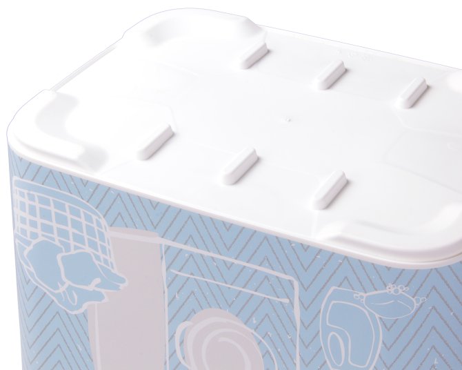 Die 60 Liter Füllvolumen ergeben sich aus den Maßen ca. 44 x 35 x 61 (H) cm. Somit finden in dieser Wäschetruhe ca. 1- 2 Waschmaschinenfüllungen Platz, welche dank den integrierten Griffen und mit Hilfe des Korbes aus einem beliebigen Zimmer zur Waschmaschine getragen werden kann. Da die Wäschebox eine trichterähnliche Form hat, ist der Boden mit den Maßen ca. 34 x 25 cm um einiges kleiner, als die Öffnung. Die Wäschekörbe lassen sich dank der kleinen Standfläche gut verstauen und aufgrund der großen Öffnung und des praktischen Deckels gut befüllen.