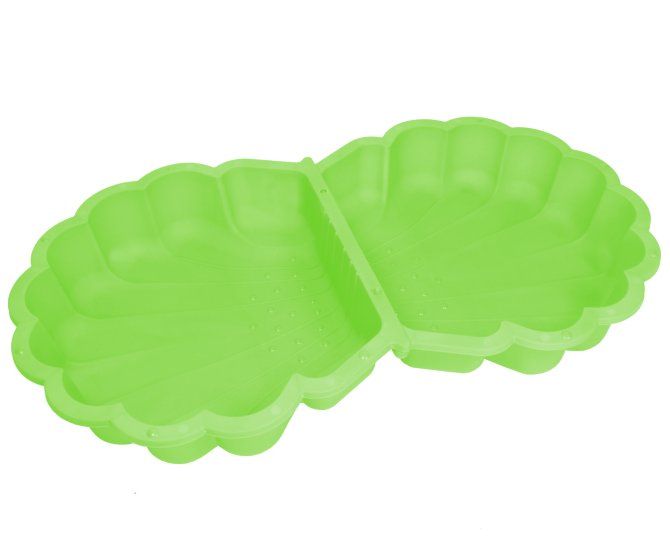 Diese Sand- und Wasermuschel in der Farbe grün ist der besondere Spielspaß für Kleinkinder ab 2 Jahre. Sie hat einen Durchmesser von ca. 80 cm und ist 20 cm hoch. Befüllen kann man die Muschel mit Sand oder wahlweise mit Wasser. Die Muschel ist aus hochwertigen Kunststoff gearbeitet, biegsam und elastisch.Man kann diese nachts mit der mitgelieferten zweiten Muschelhälfte abdecken. So können nicht unbeobachtet Tiere die Muschel als Toilette benutzen und der Sand ist hygienisch verschlossen.