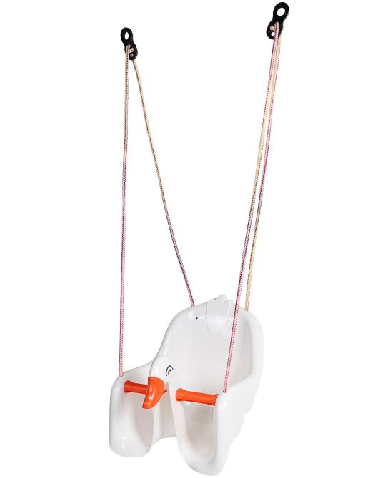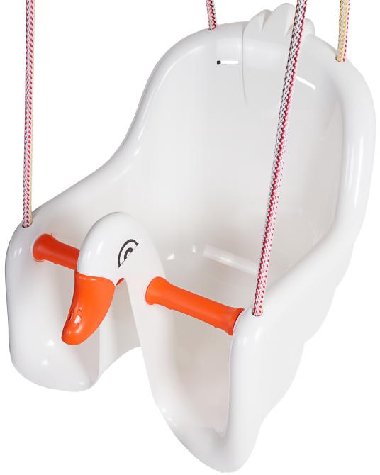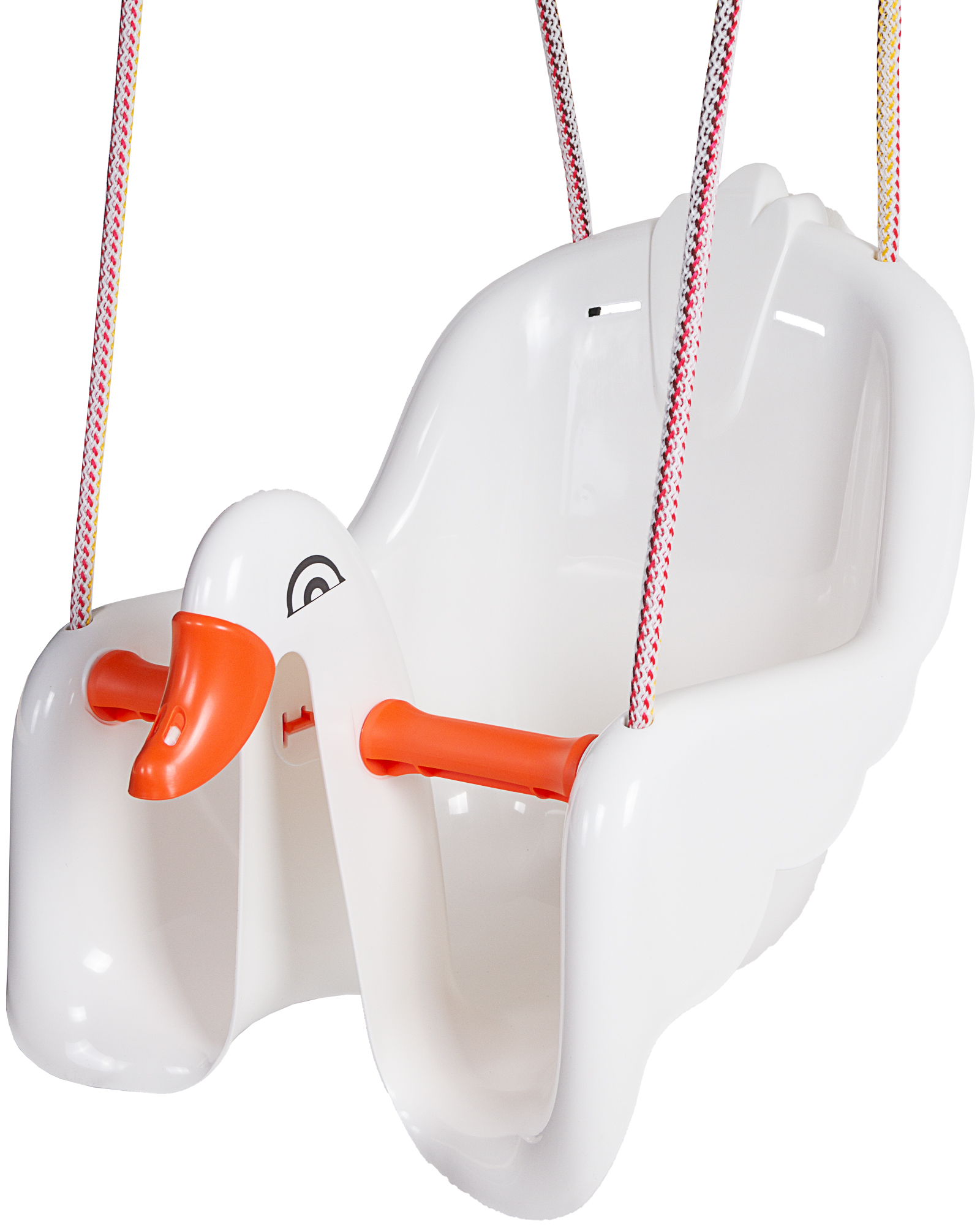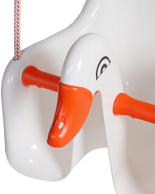 Unsere gemütliche Kinderschaukel für Kinder von 10 Monaten bis 3 Jahren ist dem Schwan sehr nachempfunden und hat einen tollen Aufdruck sowie farbliche Akzente, welche die Anmutung dieses Tieres wiederspiegeln. Die Form der Schaukel ist mit Liebe zum Detail gestaltet und hat auch sehr markante Schwanenflügel an beiden Seiten, in der Rückenlehne ist weiterhin ein kleiner gefederter Schwanenschwanz angedeutet.