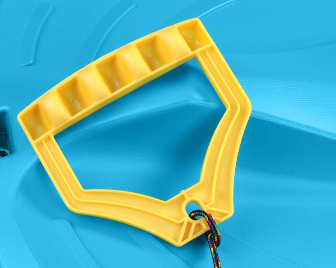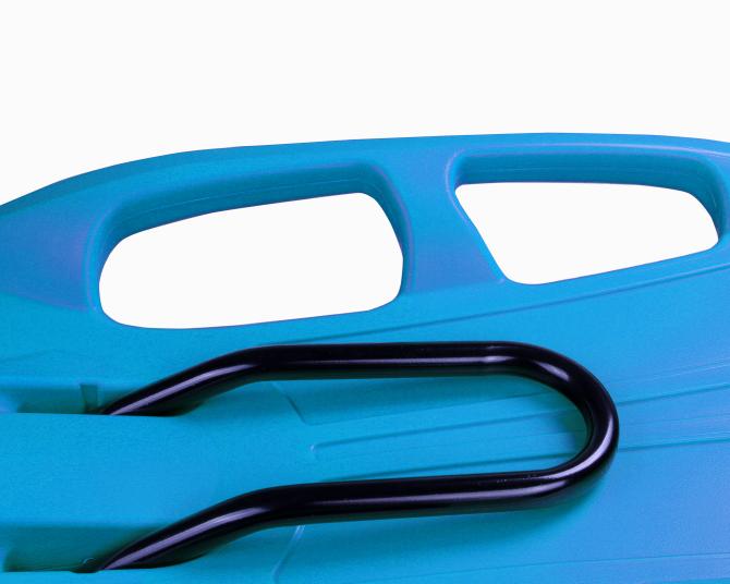 Diese SNOW TRAIN Schlitten mit 2 Plätzen sind schnell, stabil, belastbar und kinderleicht. Rodel augestattet mit Lenkelement in der Mitte, 4 Seitengriffen und mit kunterbuntem Zugseil.