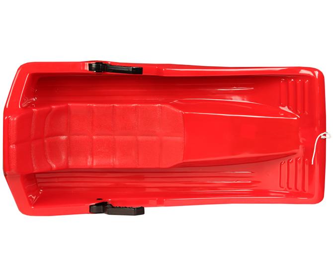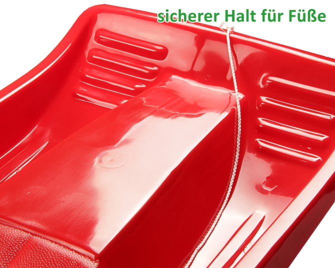 Der Schlitten ist ein Leichtgewicht und trotzdem stabil. Die Schlaufe des Schlittenseils ist ca. 100 cm lang und fest montiert, sodass der Rodel auch gezogen werden kann, wenn ein Kind auf ihm sitzt. Auf der Sitzfläche ist eine Struktur eingearbeitet, die ein rutschfreies Sitzen gewährleistet. Dort wo während der Fahrt die Füße abgestellt werden, sind ebenfalls Rillen zu finden - einer sicheren Fahrt die Schneehänge hinab, steht also nichts im Wege. Der Schlitten ist aus hochwertigem Kunststoff gearbeitet, der natürlich frostsicher ist. Natürlich Bis Weihnachten oder bis zum nächsten Winter sind auch zwei oder mehr Schlitten platzsparend verstaut, da sie nestbar sind.