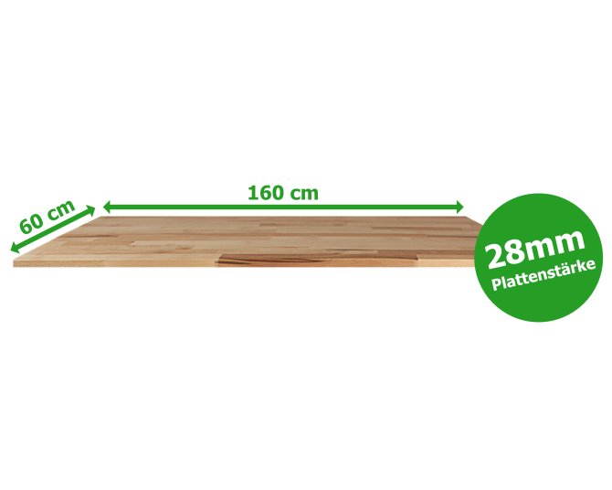 Die Abmessungen von 1600 x 600 x 27 mm (L/B/H) bieten eine großzügige Arbeitsfläche und machen diese Arbeitsplatte vielseitig einsetzbar. Egal, ob Sie handwerkliche Projekte umsetzen oder präzise Arbeiten durchführen, unsere Arbeitsplatte für Werkbänke bietet Ihnen den Raum und die Qualität, die Sie benötigen.