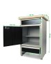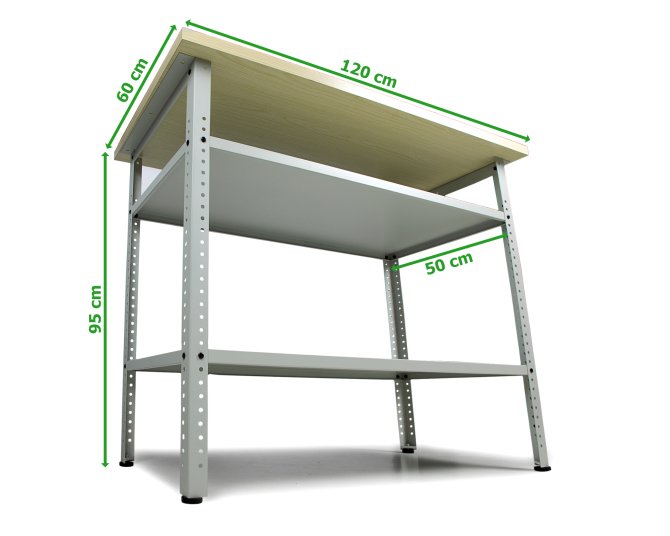Die Werkbank besitzt Füße mit Höhenverstellung, damit etwaige Unebenheiten problemlos ausgeglichen werden können und die Werkbank einen sicheren Stand hat. Die beiden Zwischenböden verleihen der Werkbank nicht nur ihre Stabilität sondern bieten auch jede Menge Stauraum, der effektiv genutzt werden kann. Außerdem lassen sich die Fachböden individuell einsetzen und können in den vorgebohrten Löchern je nach Wunsch angebracht werden. Durch die offene Konstruktion kann man verstaute Utensilien sofort und in einem Handgriff entnehmen. Die Werkbank wird demontiert geliefert. Ein allround- Heimwerker hat keine Probleme beim Zusammenbau dieses Werktisches. Für den Aufbau sollte man etwa 15-20 Minuten einplanen und schrittweise nach der Anleitung vorgehen. Alle nötigen Zubehörteile und eine Aufbauanleitung sind natürlich im Paket enthalten, auch Werkzeug wird im Paket mitgeliefert. Zu dieser Werkbank haben wir ebenfalls passende Werkzeugschränke und Lochwände im Programm. Die Maße der Werkbank sind 120 (B) x 95 (H) x 60 (T) cm und wiegt ca. 28,5 KG.