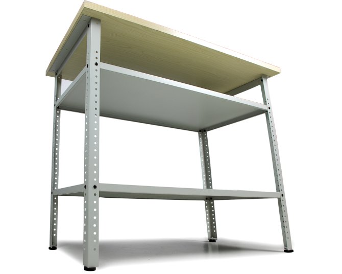 Die Werkbank Basic Pro besser, individueller und innovativ - Sie ist ein im Montage-Handwerk gebräuchlicher Arbeitstisch, der vor allem für den Heimwerker, für Garage , Bau, Hobby und Basteln geeignet ist, aber auch bei jedem Profi nicht fehlen darf. Sie wird mit einer stabilen, 30 mm melaminbeschichteten Arbeitsplatte in Bambusoptik geliefert. Die Werkbank ist aus Metall gearbeitet und mit einem kratzunempfindlichen Einbrennlack in der Farbe lichtgrau lackiert. Unter der Arbeitsplatte befinden sich zwei große Ablageflächen, wo sperrige Werkzeuge untergebracht werden können.