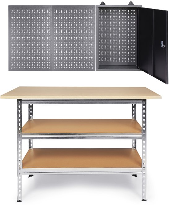Werkbank 120 x 60 x 92 (H) cm, robuster Uwe Arbeitstisch mit 2 großen Ablageflächen, justierbare Füße, 28 mm dicke Arbeitsplatte aus Holz, besonders günstig kaufen!