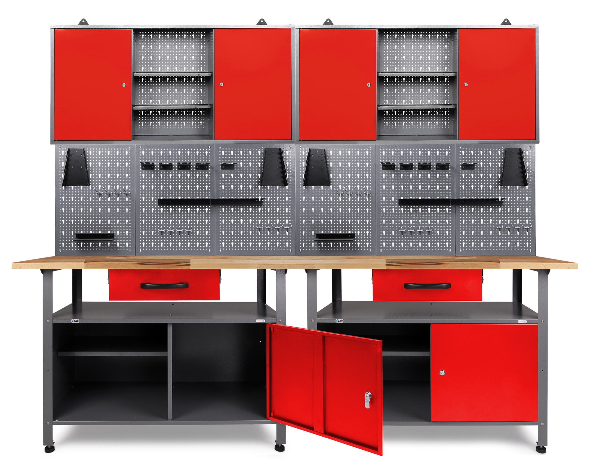 Sie können die verschiedenen Einzelteile der Werkstatteinrichtung auch getrennt voneinander positionieren, um Ihre Werkstatt ganz individuell nach Ihren Wünschen zu gestalten. Weiterhin ist die Werkstatteinrichtung mit unseren anderen Werkstattartikeln problemlos erweiterbar!