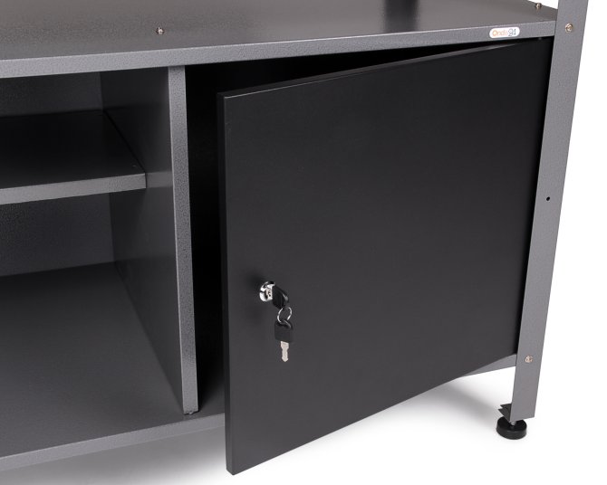 Die Werkbank Klaus verfügt über eine großräumige Schublade sowie über zwei Schrankteile, von denen eins verschließbar ist, das andere Schrankteil mit einem Einlegeboden ausgestattet ist. Insgesamt besitzt die Werkbank Klaus Maße von ca. 120 x 60 x 85 (H) cm und weist eine äußerst starke 28 mm Holzplatte auf. Sie ist aus hochwertigem Buchenholz verleimt und dadurch ist sie top-solide! Mithilfe des verschließbaren Schrankteils lässt sich auch großes Werkstattzubehör wie eine Bohrmaschine, Kabeltrommel und ein Fräser sicher und einfach verstauen. Höhenverstellbare Füße sorgen für einen stabilen Stand sowie für ein bequemes Arbeiten auf der Werkbank Klaus. Der Metallkorpus ist neben einem modernen Design auch durch seine Resistenz gegen Kratzern und Feuchtigkeit charakterisiert.