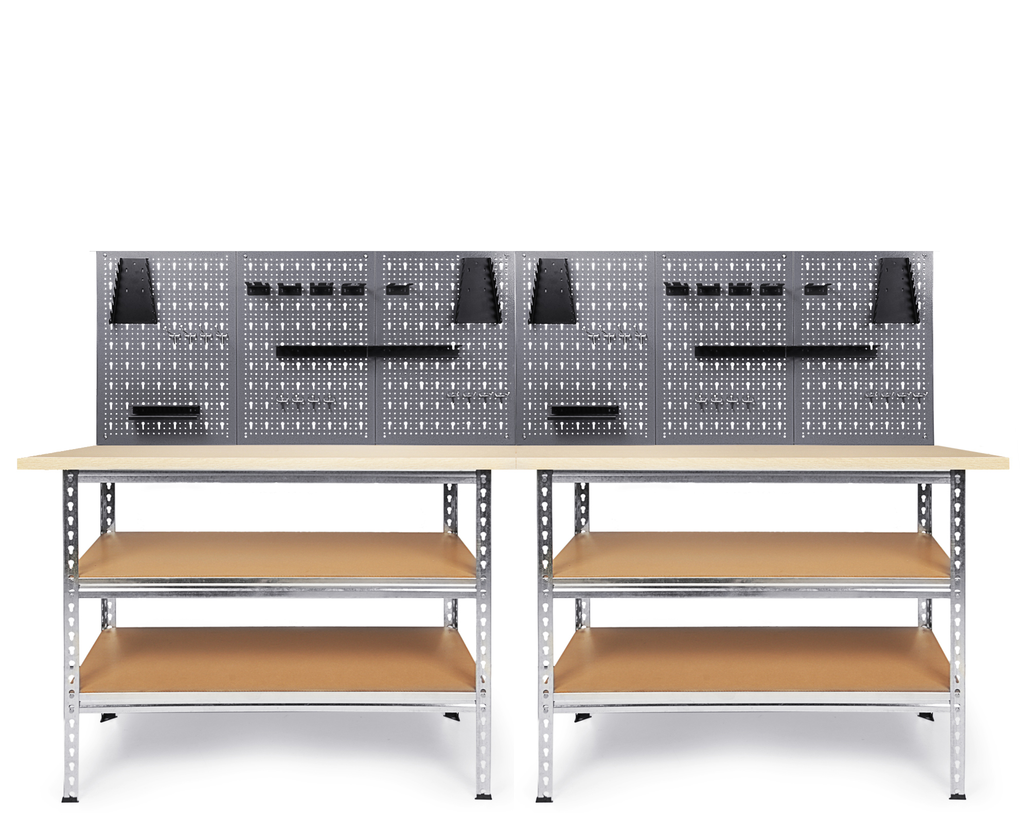 Das Werkstatt Set Uwe 240 cm ist die ideale Komplettlösung für Ordnung und effizientes Arbeiten in Werkstatt, Garage oder Hobbyraum. Die Kombination aus robusten Werkbänken und praktischen Lochwand-Sets bietet viel Stauraum, hohe Stabilität und flexible Nutzungsmöglichkeiten.