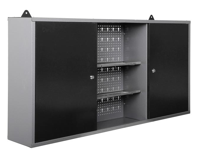 Der Werkzeugschrank Ben besitzt die Maße von 80 x 20 x 60 (H) cm und wiegt nur 8 kg. Die beiden Einlegeböden des Werkzeugschrankes lassen sich beliebig je nach Bedürfnis einrichten. Durch die zwei abschließbaren Türen werden Ihre Geräte und Werkzeuge sicher aufbewahrt und sind vor Staub geschützt. Der Werkzeugschrank ist durch die großen stabilen Aufhängungen leicht und sicher an der Wand zu befestigen.