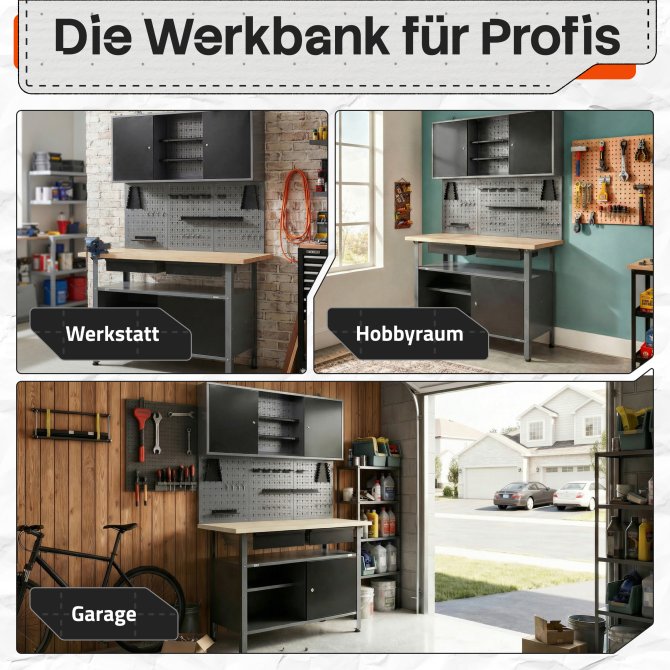 PERFEKT FÜR EINSTEIGER - Du bist ganz normaler Heimwerker und brauchst eine Ordnungslösung für deine Hobbywerkstatt? Keine Lust ewig zu suchen und zu recherchieren? Die Musterlösung Werkstattset Fritz ist die perfekte Lösung um maximalen Stauraum für minimales Budget zu bekommen.