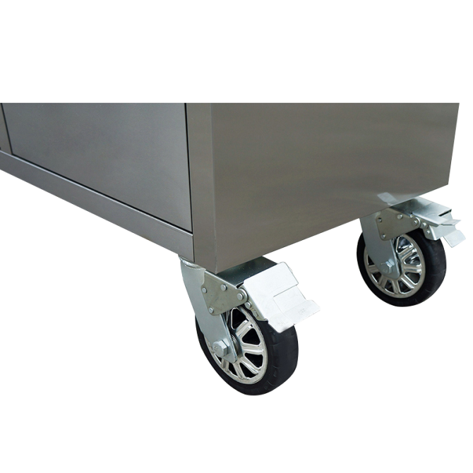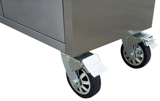 Die beiden seitlichen Griffe bieten bequeme Handhabung und Mobilität, während die 4x6"-Rollen, davon 2 mit Bremsen, für eine flexible Bewegung und sicheren Stand sorgen. Das Set wird komplett mit einer Schubladeneinlage sowie einem Flachschlüssel geliefert, damit Sie sofort mit Ihrer Arbeit beginnen können.