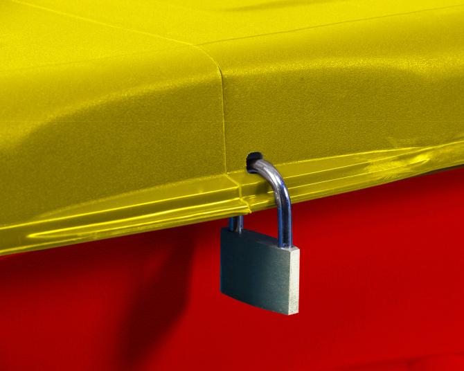 Zur Sicherheit Ihrer persönlichen Gegenstände bietet diese Box zwei Ösen, am Boden des ca. 155 Liter großen Inneren, mit Hilfe derer zu lagernde Utensilien sicher verstaut werden können. Zusätzlich besitzt diese Lagerbox eine Aussparung, um ein Vorhängeschloss anzubringen und zusätzliche Sicherheit zu erreichen. Egal ob rollend, stehend oder fahrend, mit der Pandorino Aufbewahrungsbox sind ihre Gartenwerkzeuge und Kinderspielsachen sicher aufgehoben.
