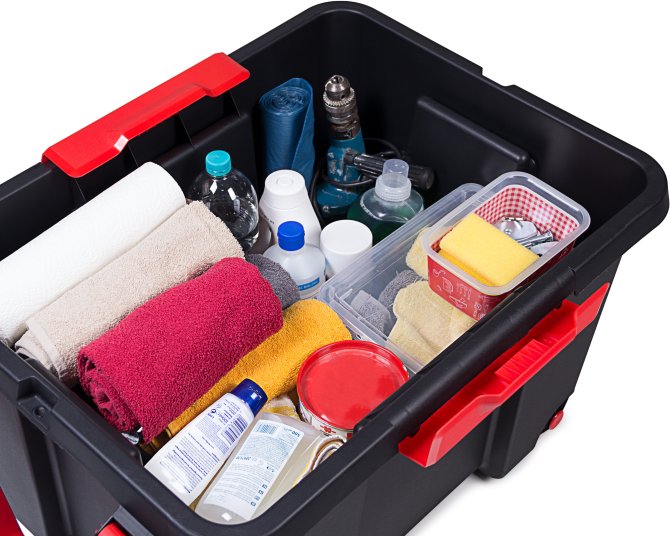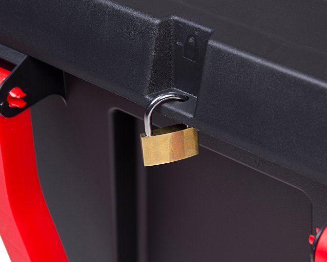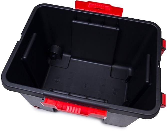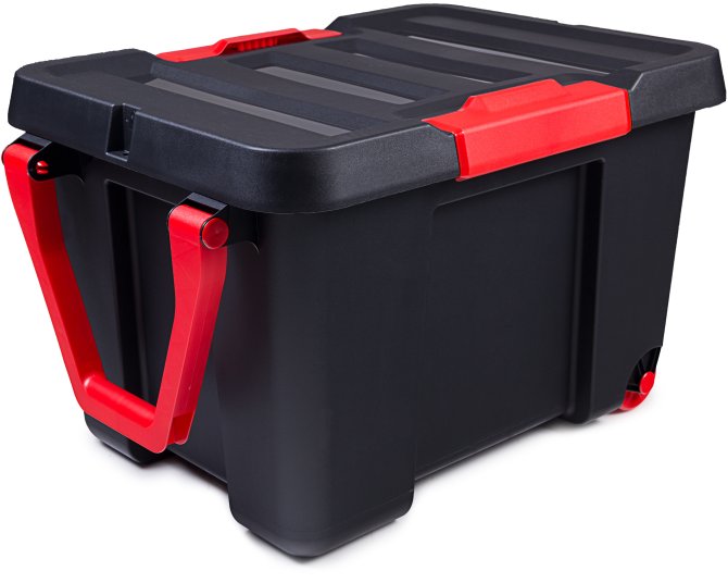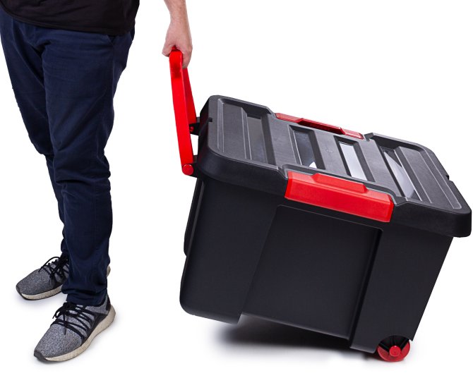 Ein weiterer Vorteil der Malle Stapelbox ist, dass zu jeder Box gleich ein Deckel mitgeliefert wird. Der Inhalt wird also, anders als bei anderen Dreh- und Stapelboxen, sicher vor Staub und Schmutz geschützt. Die roten Verschlüsse klicken gut ein und halten den Deckel sicher auf der Box. Die Malle Ordnungsbox ist insgesamt ca. 77 x 56 x 48 (H) cm groß (nur Box ca. 73 x 56 x 48 (H) cm) und bietet am Boden ein inneres Nutzmaß von ca. 58 x 39 cm. Dank des geringen Gewichts von ca. 4,3 kg lässt sich die Box einfach transportieren. Die zwei verbauten Rollen und ein auf der gegenüberliegenden Seite leichtgängige Griff machen dies sehr leicht! Da hochwertiger Kunststoff verarbeitet wurde, wirken die Kisten nicht nur wertig, sondern sind auch äußerst stabil.