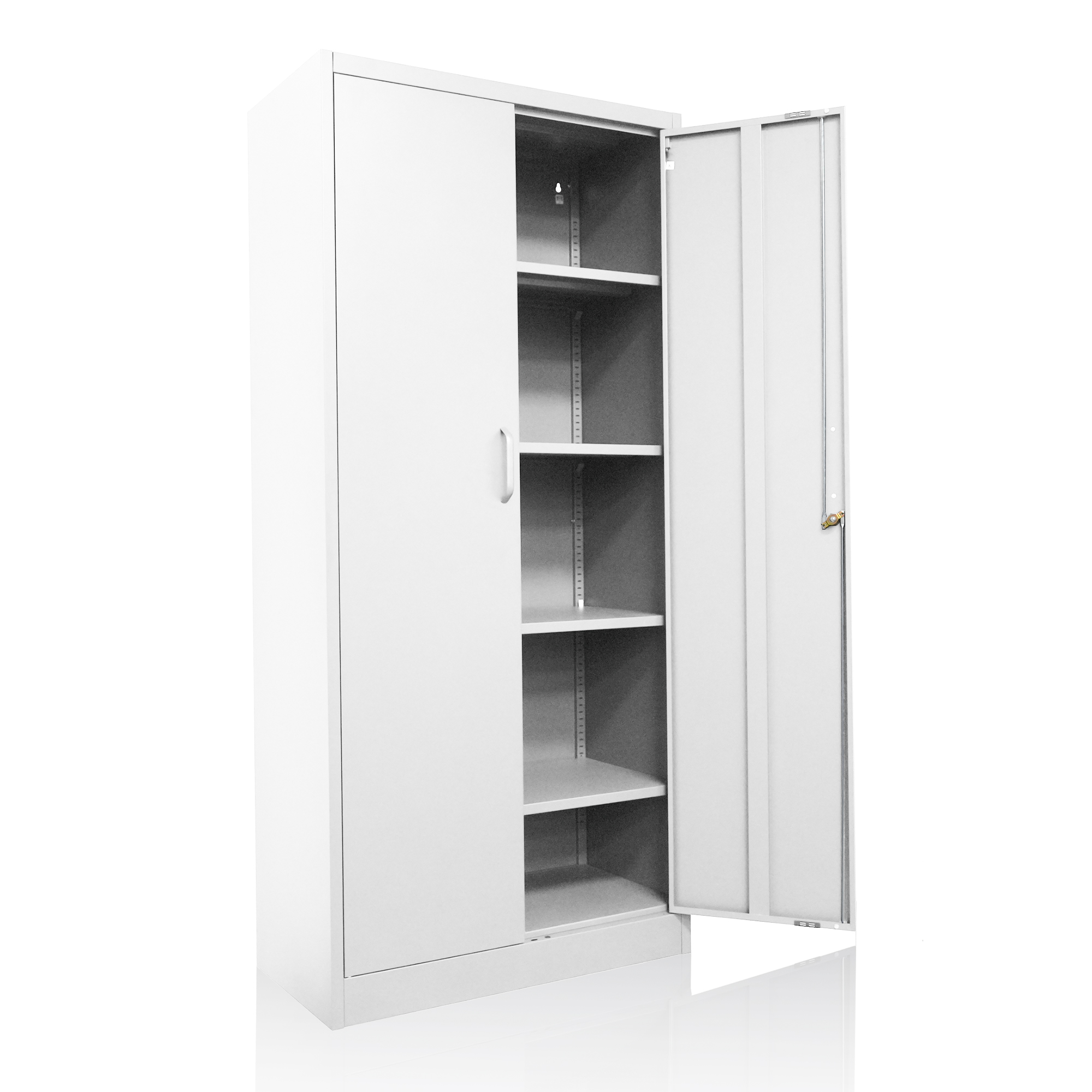 Dieser Stahlschrank hat die Maßen von ca. 78 x 39 x 170 (H) cm und verfügt über vier Einlageböden aus Metall, die einfach und schnell in den Seitenwänden befestigt werden. Die Einlegeböden sind in der Höhe verstellbar und können jeweils bis zu 50 kg tragen. So können Sie die Einlegeböden auch solchen Abständen anbringen, der Ihnen insbesondere die Aufbewahrung von Ordnern in mehreren Reihen übereinander ermöglicht. Der Weg für ein Archiv ist damit frei. Die beiden Türen des Schranks sind einfach abzuschließen (2 Schlüssel im Paket enthalten). Der Aktenschrank ist damit die ideale Ergänzung für Ihr Büro. Er ist noch ausreichend leicht, sodass er bei Bedarf auch verrückt oder zu zweit umhergetragen werden kann.