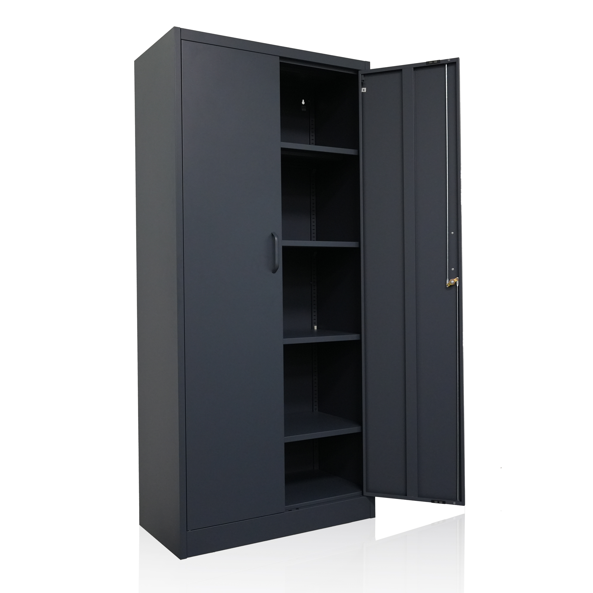 Dieser Stahlschrank hat die Maßen von ca. 78 x 39 x 170 (H) cm und verfügt über vier Einlageböden aus Metall, die einfach und schnell in den Seitenwänden befestigt werden. Die Einlegeböden sind in der Höhe verstellbar und können jeweils bis zu 50 kg tragen. So können Sie die Einlegeböden auch solchen Abständen anbringen, der Ihnen insbesondere die Aufbewahrung von Ordnern in mehreren Reihen übereinander ermöglicht. Der Weg für ein Archiv ist damit frei. Die beiden Türen des Schranks sind einfach abzuschließen (2 Schlüssel im Paket enthalten). Der Aktenschrank ist damit die ideale Ergänzung für Ihr Büro. Er ist noch ausreichend leicht, sodass er bei Bedarf auch verrückt oder zu zweit umhergetragen werden kann.