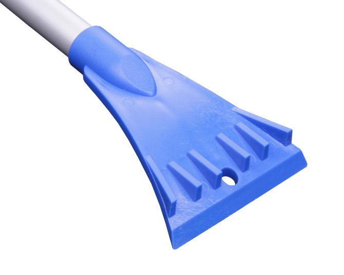 Dieser Kratzer verfügt über eine ca. 10 cm extra harte Klinge aus Kunststoff, welche an der Rückseite sechs Krallen besitzt. Diese eignen sich besonders gut, um dicke Eisschichten zu durchdringen und es anschließend mit Kunststoffklinge zu beseitigen.